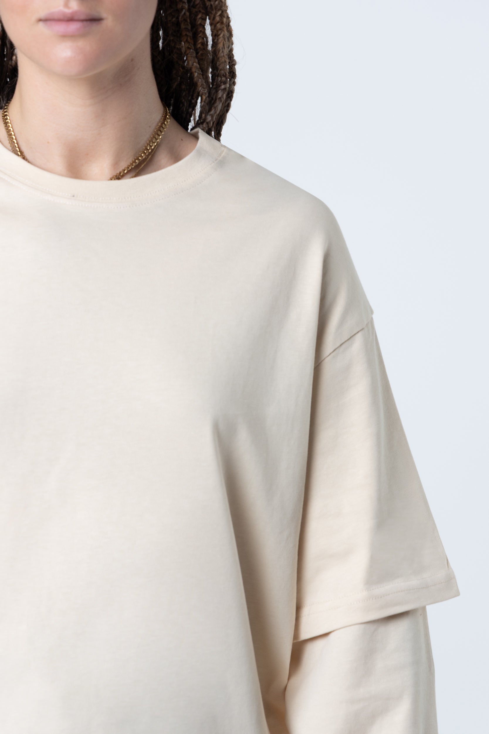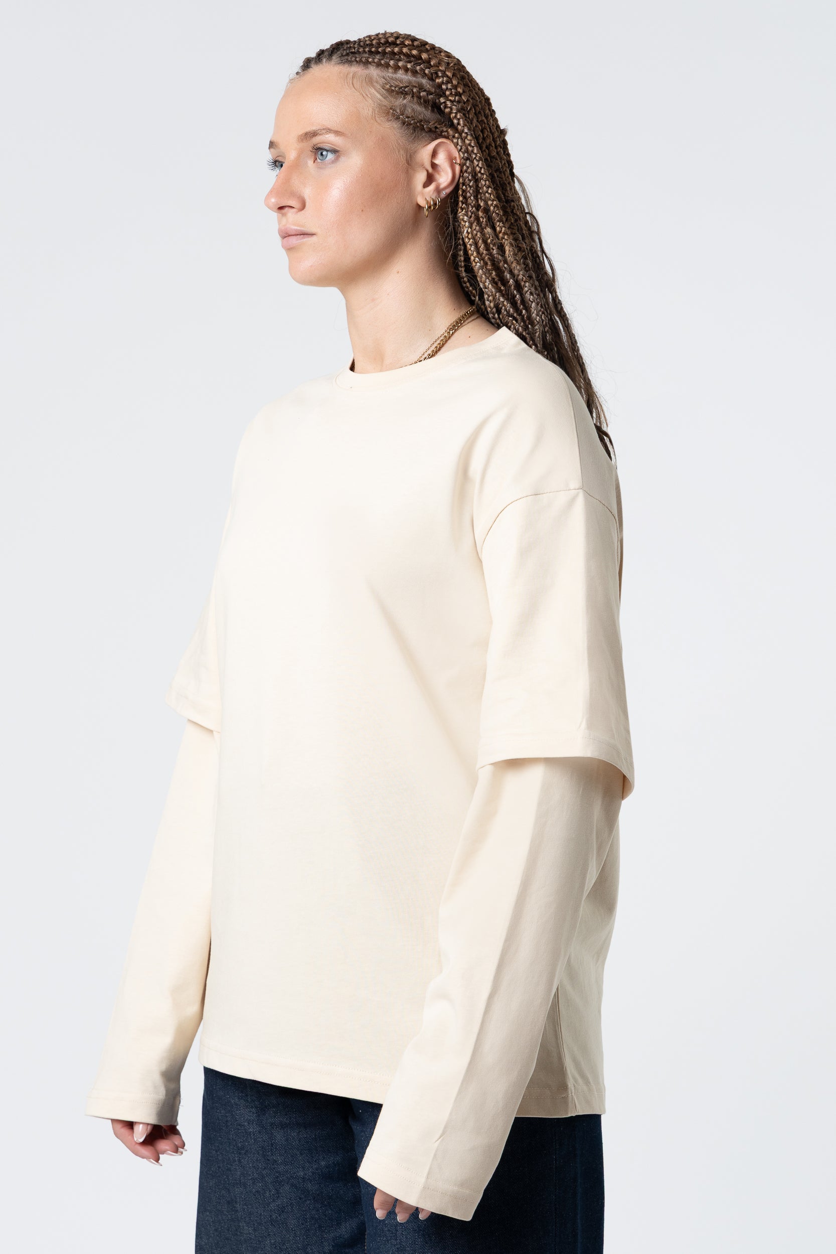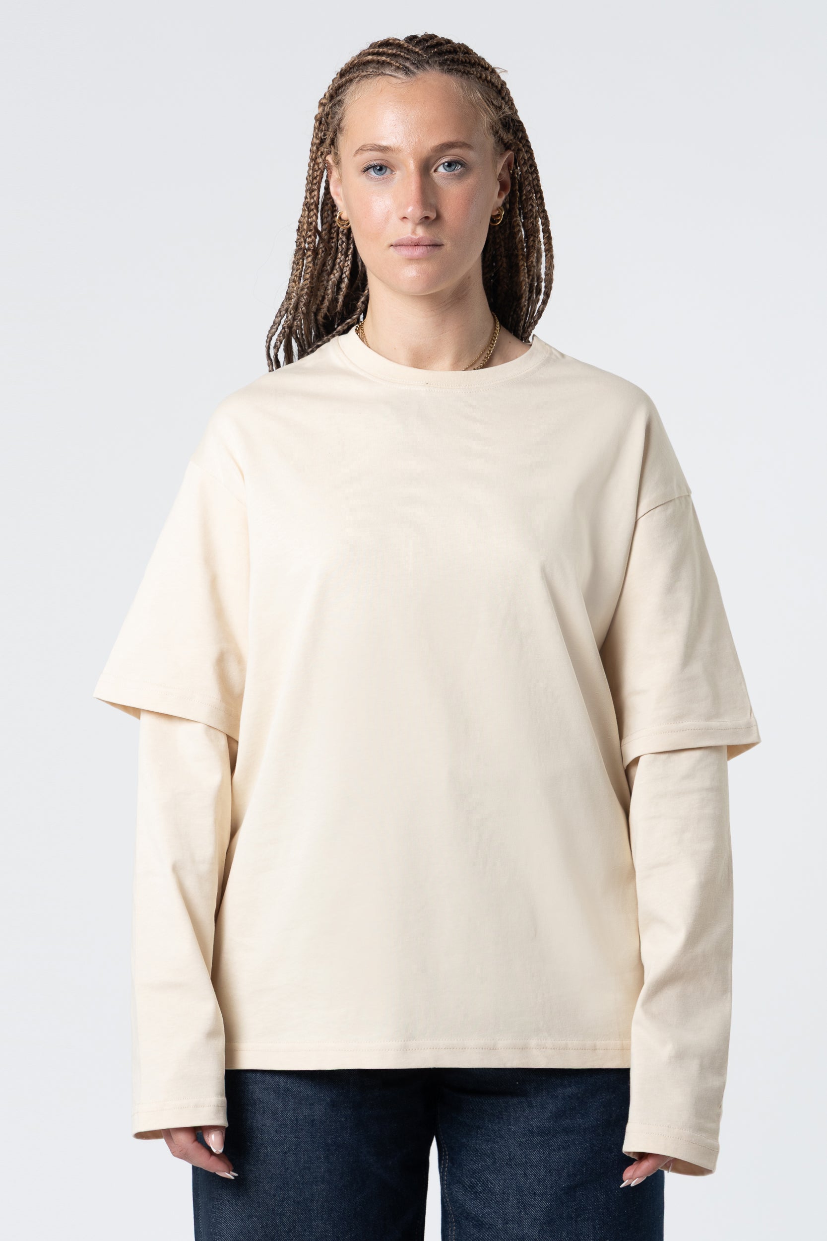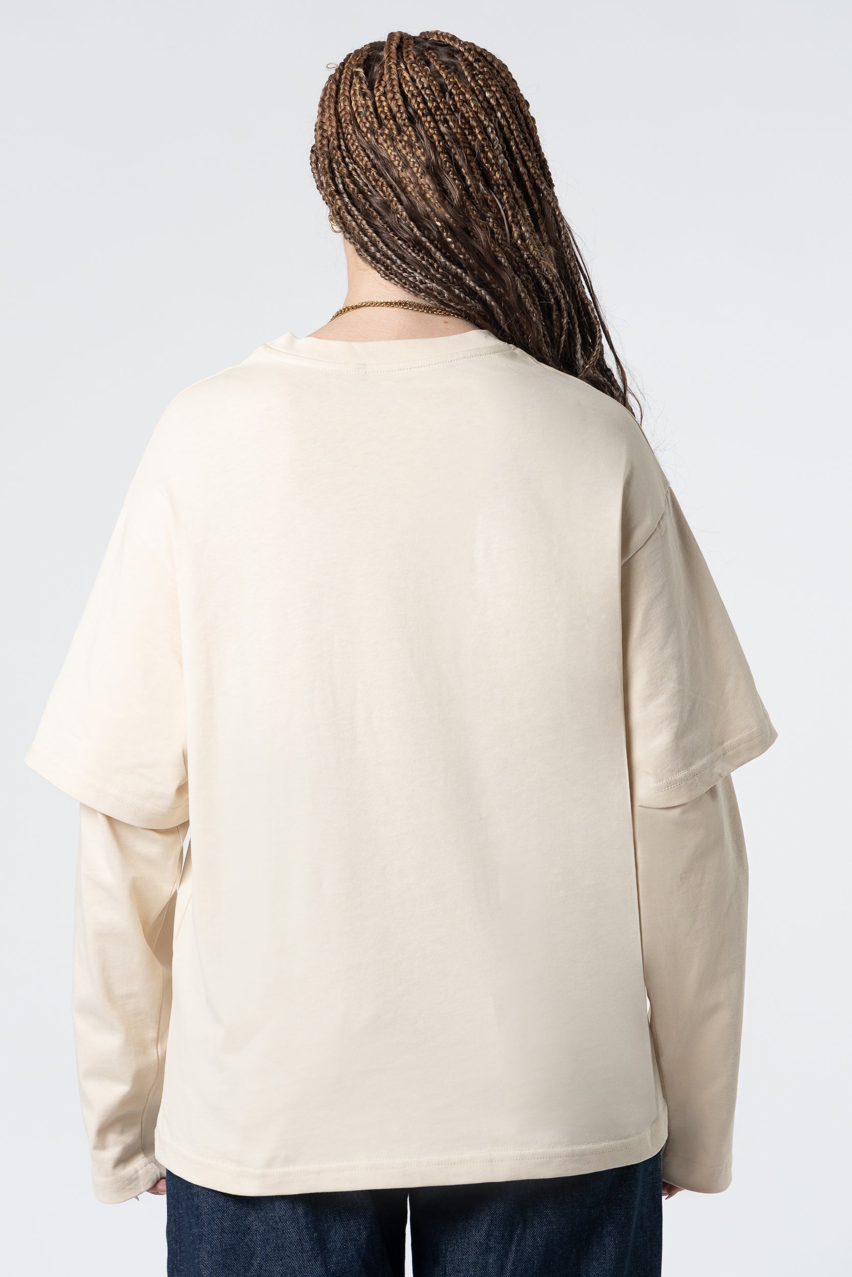 Mangas largas dobles en blanco, 220 g/m², color arena