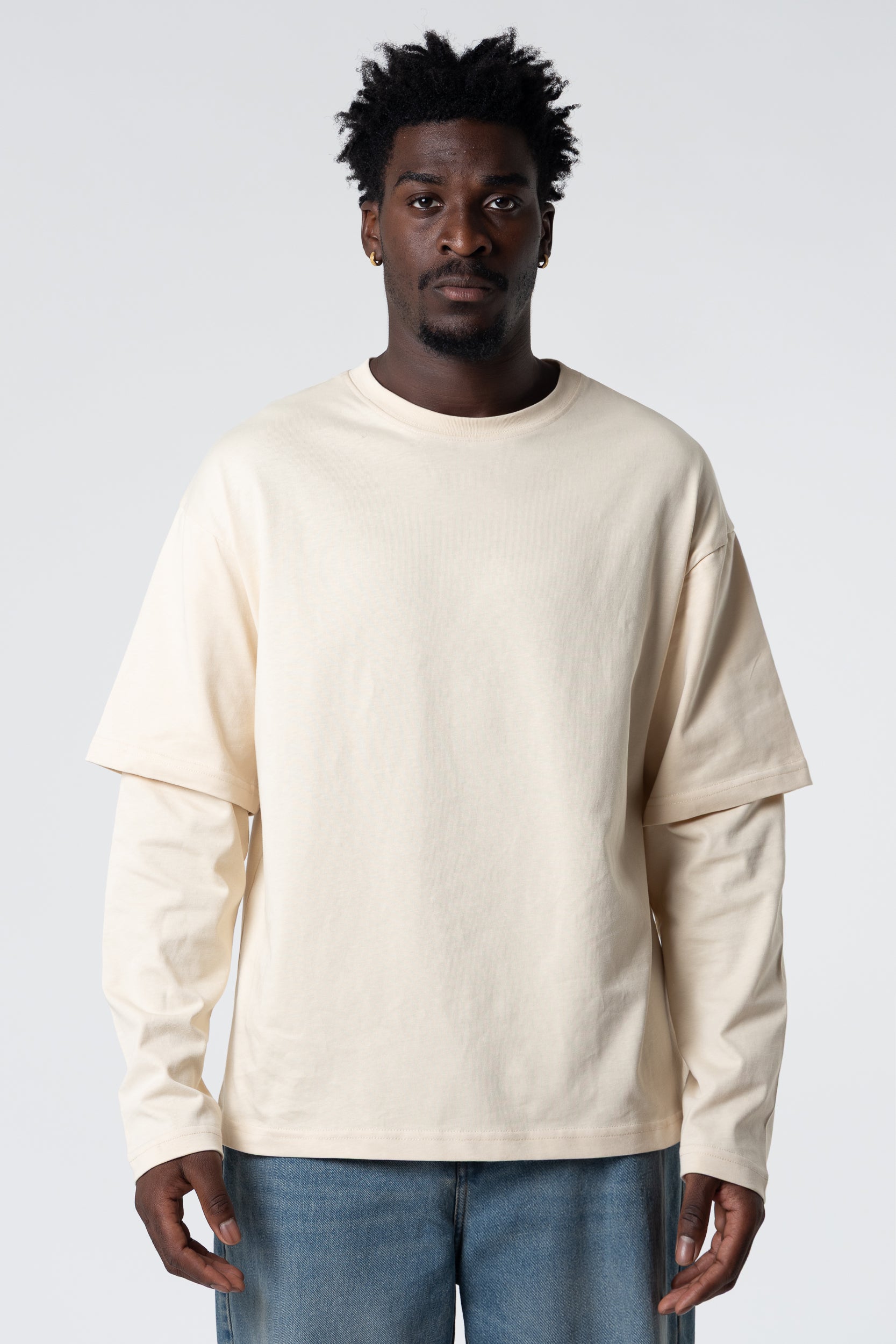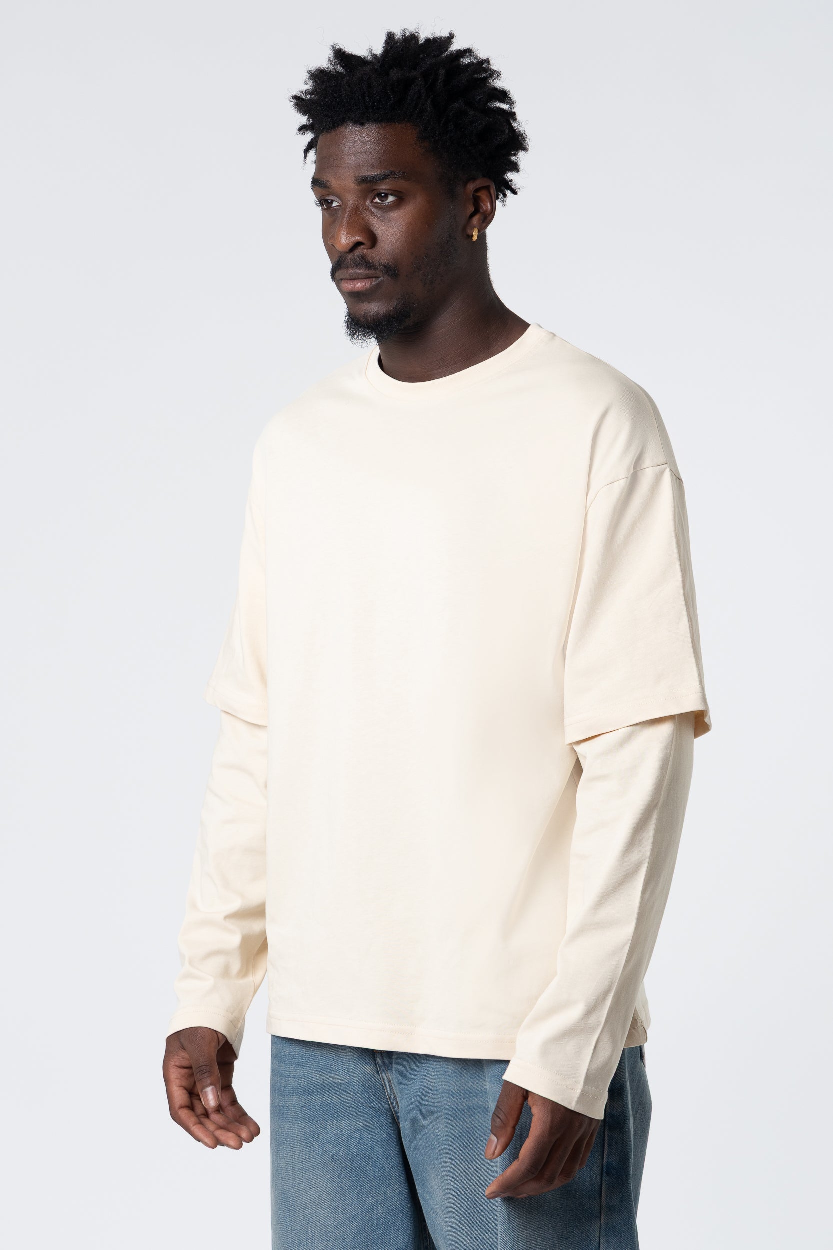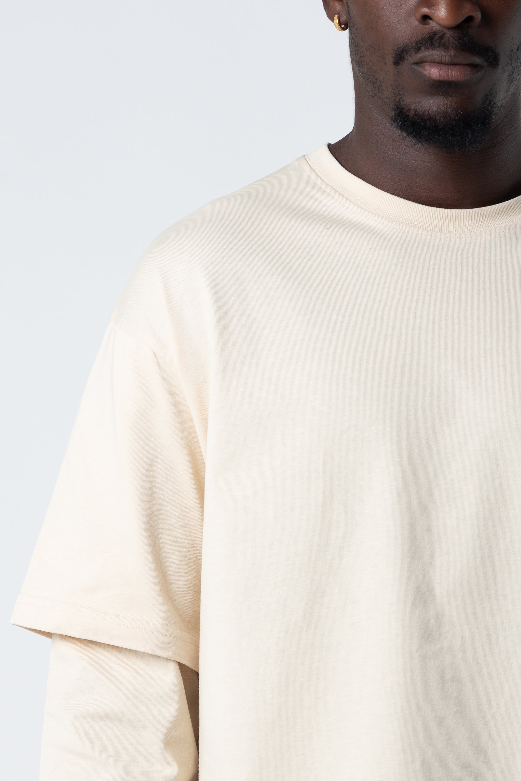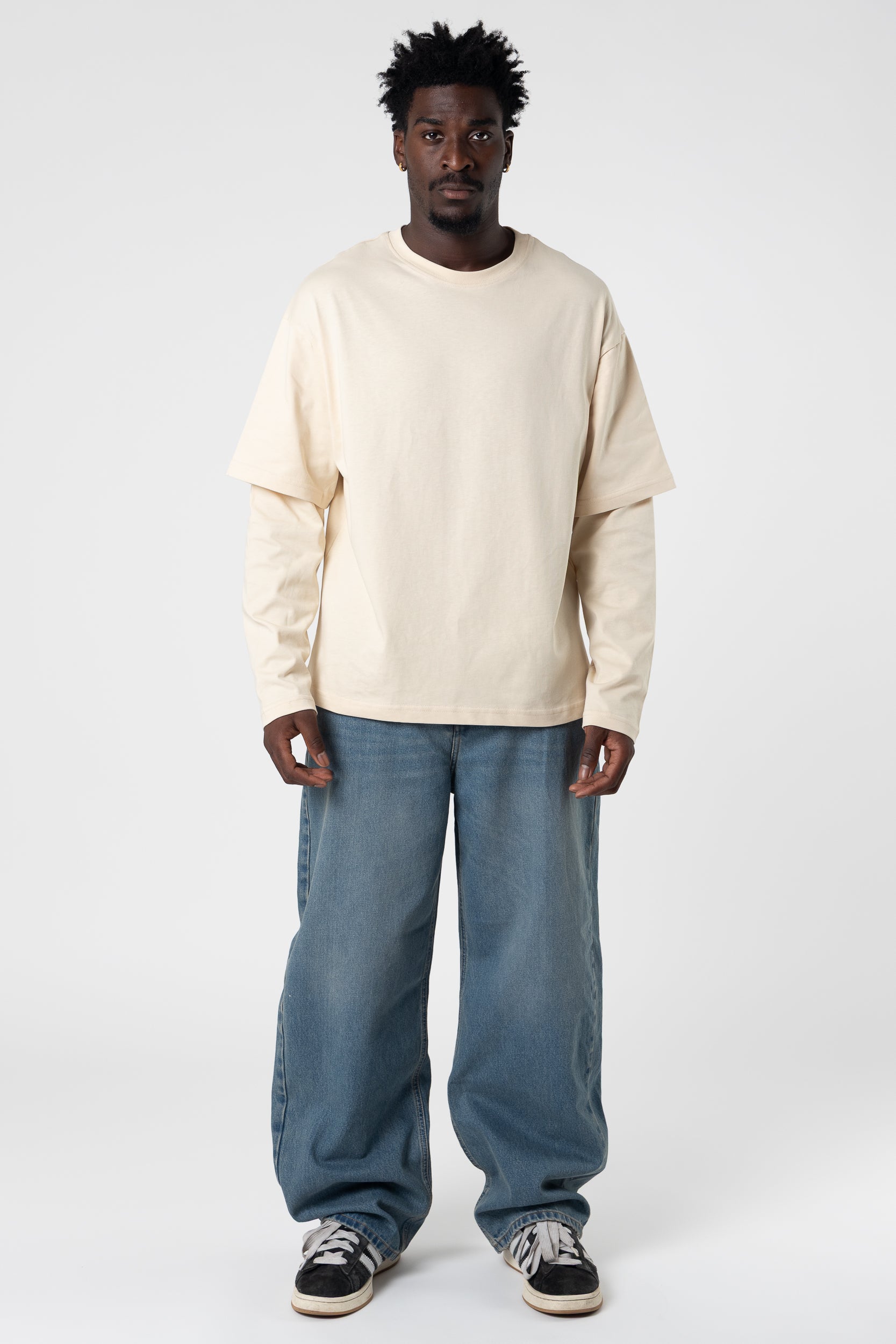 Mangas largas dobles en blanco, 220 g/m², color arena